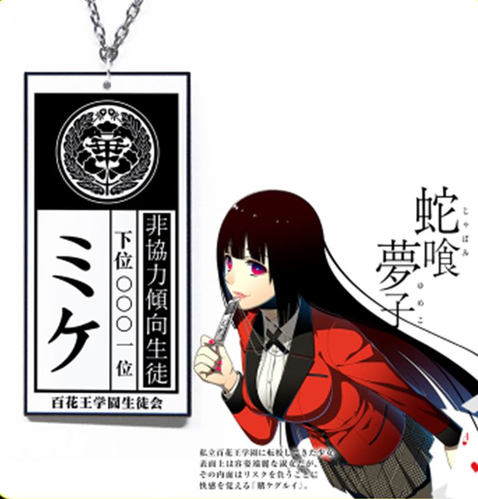 O Colar Cosplay Mary Saotome Yumeko Runa kakegurui - Niponcosplay é de excelente qualidade, pois é feito em acrílico com impressão impecável.