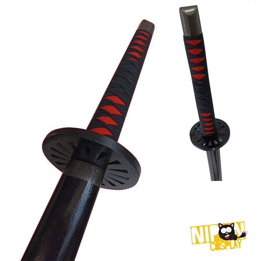 O cabo ESPADA TANJIRO KAMADO - NIPONCOSPLAY é trançado manualmente com fita de algodão e a pintura AUTOMOTIVA